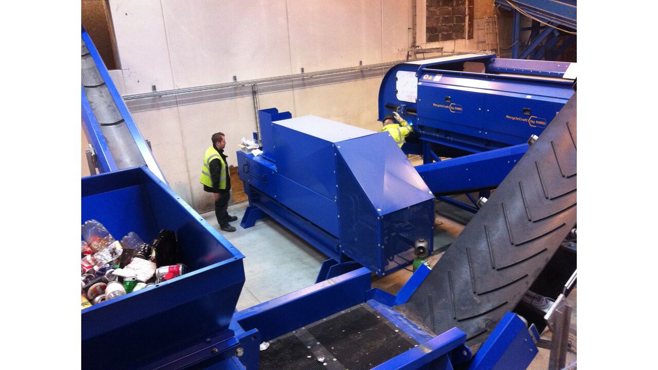 Aluminiumsdåserne føres gennem tragten til pressekammeret, hvorefter dåserne presses sammen af den hydrauliske presse. Når dåserne er presset sammen åbnes spjældet og aluminiumsballen presses ud af maskinen.