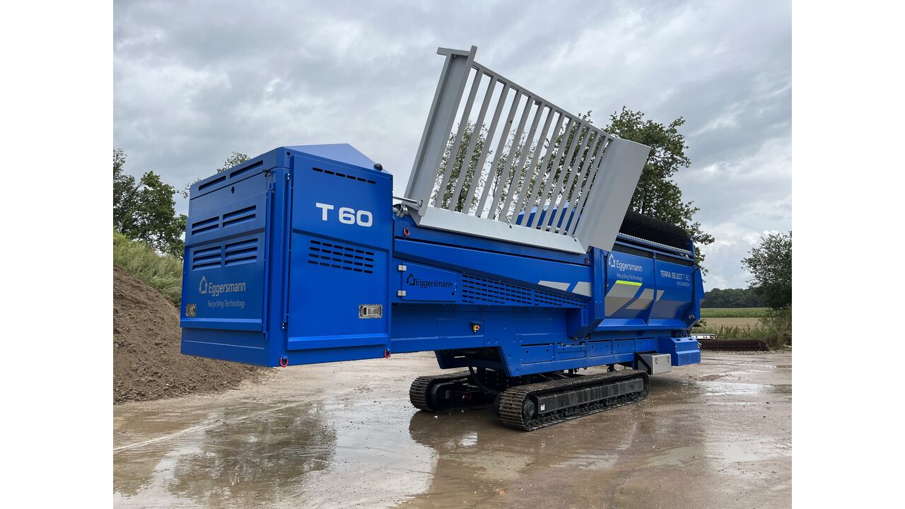 Med den nye version af Terra Select T60 på larvefødder præsenterer Eggersmann den mest omfattende opdatering af deres tromlesigter til dato: Larvefødderne er blevet suppleret med yderligere brugbare funktioner, og hele maskinkonceptet er blevet videreudviklet baseret på kundernes feedback. Introduktionen af T60 markerer dermed starten på en topmoderne ny generation af tromlesigter. Desuden kan Terra Select T60 fra nu af bruge alle tromlerne fra andre brands på markedet, hvilket gør Terra Select T60 til en ægte MULTIMASTER.